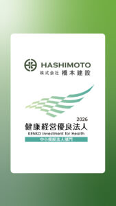 これからも橋本建設は従業員が健康に、やりがいをもって働くことのできる環境づくりに引き続き取り組んでいきます!